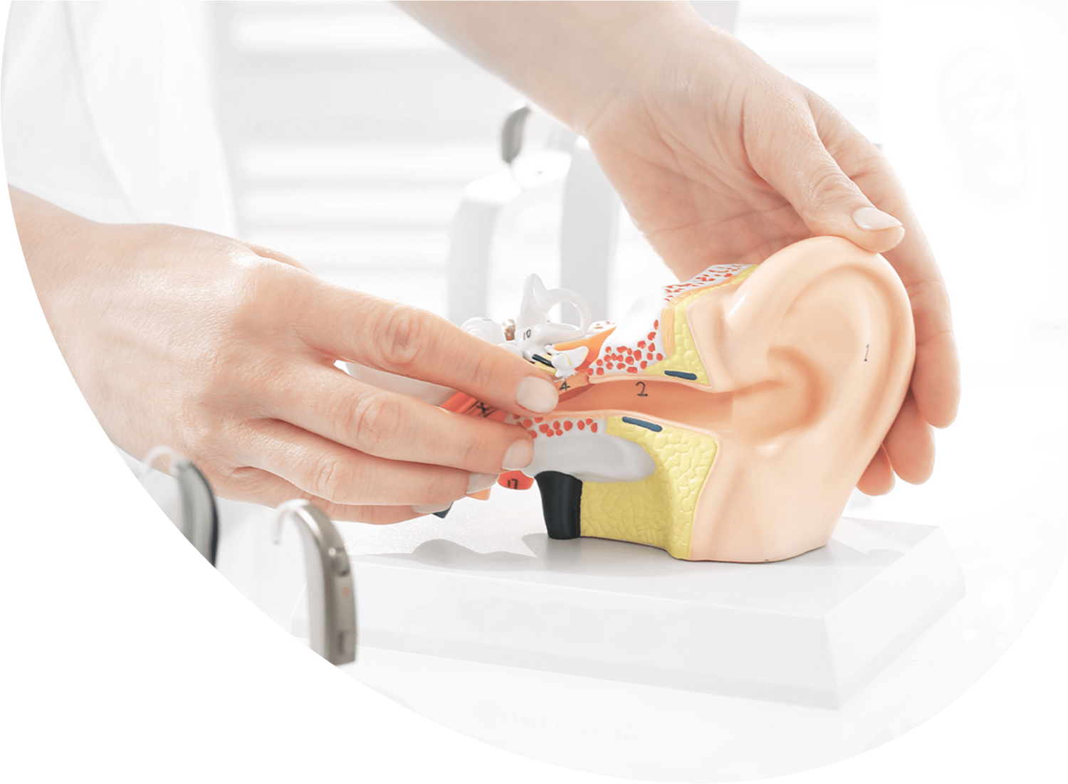 Töne und Geräusche werden von der Ohrmuschel aufgefangen und wie durch einen Trichter zum äusseren Gehörgang und zum Trommelfell geleitet. Dieses nimmt die Schwingungen auf und gibt sie zum Mittelohr weiter. Gleichzeitig beurteilt die Ohrmuschel, aus welcher Richtung der Schall kommt. Das funktioniert jedoch nur, wenn beide Ohren gesund und zu gleichen Teilen am Hören beteiligt sind.
